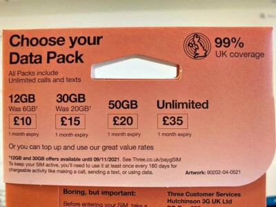 Three 3 Network 20gb 5g Ready Sim Card Latest 2020 Unlimited Tariff 5050553351963 Ebay